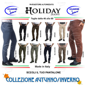 HOLIDAY JEANS Pantalone PILOR MOD. Plat (Pesante/Invernale) Made in Italy Uomo Cotone TG. 46 48 50 52 54 56 58 60 Caldo Cotone Fustagno Elasticizzati Comfort