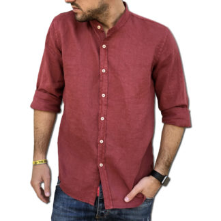 Puro Lino Camicia SLIM Uomo CILIEGIA Coreana Manica Lunga TG. S, M, L, XL, XXL e 3XL Primavera/Estate