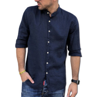 Puro Lino Camicia SLIM Uomo BLU Coreana Manica Lunga TG. S, M, L, XL, XXL e 3XL Primavera/Estate