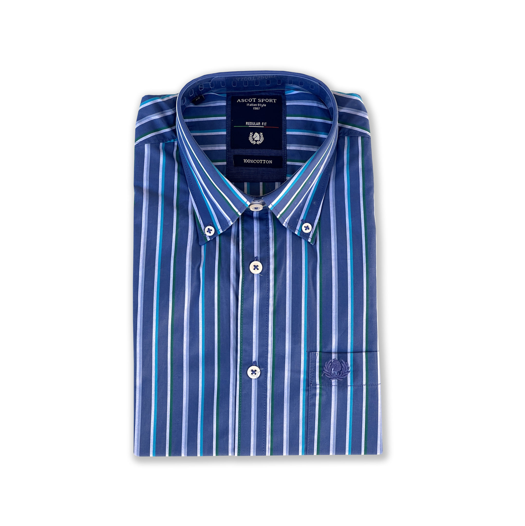 ASCOT SPORT Camicia Uomo Manica Lunga RIGHE TG. M, L, XL, XXL, 3XL – Botton down – 100% cotone (Variante 01)
