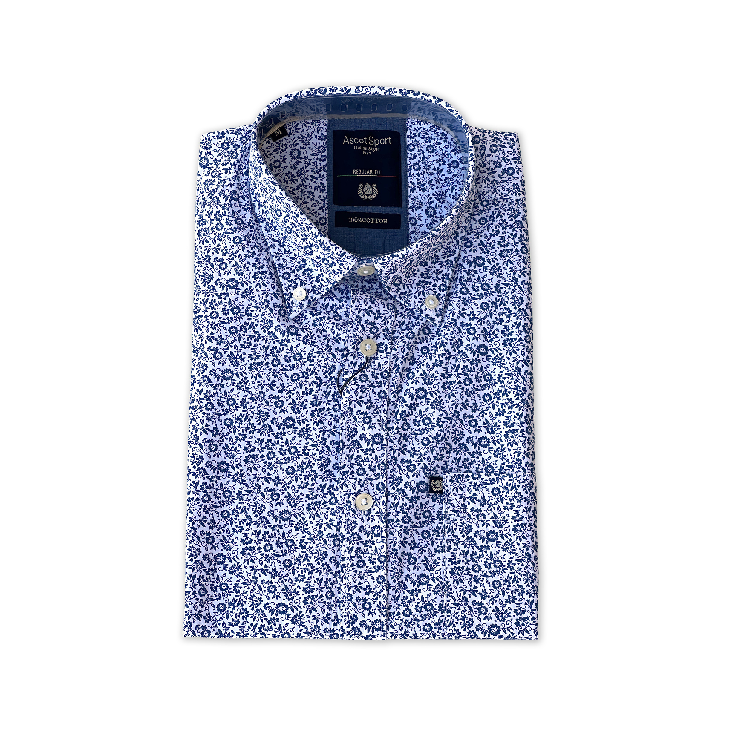 ASCOT SPORT Camicia Uomo Manica Lunga MICROFANTASIA TG. M, L, XL, XXL, 3XL – Botton down – 100% cotone (Variante 01)